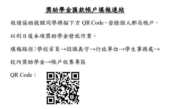 (一)請協助通知符合資格但尚未登入郵局帳戶的同學於115年3月27日前線上登入郵局帳戶。